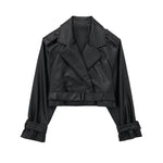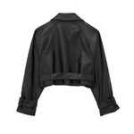 show ▼Make a bold statement with the Cropped Faux Leather Trench Jacket – a contemporary spin on a timeless classic. Designed in sleek black faux leather, this cropped trench silhouette brings instant edge to any outfit. With exaggerated lapels, adjustable cuffs and a belted back detail, it’s the perfect piece to layer over basics for that effortless off-duty model look.