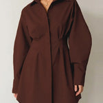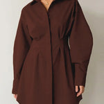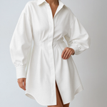 show ▼A modern twist on classic shirting. This shirt dress combines sharp tailoring with a feminine A-line silhouette, creating a piece that works from office hours to evening plans. With its clean lines, collared neckline and long sleeves, it’s a timeless wardrobe essential.