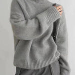 Crafted for warmth and timeless simplicity. This knitted turtleneck sweater is the ultimate cozy staple, designed with a relaxed silhouette and soft texture. Featuring a high roll neck and long sleeves, it’s perfect for layering or wearing on its own during colder days.
